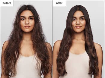 Promising review: "I personally am not a fan of how the hair oils feel on my hands and have found this product to be a great alternative! I like to braid my hair at night and then pull it out and wear it wavy. But if I comb through it, it’s a frizzy mess! This product definitely calms it down!" —Sarah Thielke