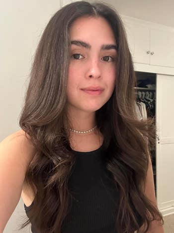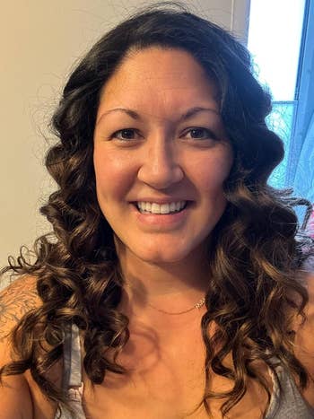 Here’s what BuzzFeed Shopping editor Jenae Sitzes has to say: "As someone who's never had the patience to blow dry their hair, I picked this air dry cream up after seeing its heat-free results in this TikTok and reading all the positive reviews. For context, I have extremely thin, fine hair that is mostly pretty straight. This air-dry cream has a really nice, silky consistency and smells like the salon (IDK how else to describe it, but it's a pleasant smell), and it doesn't make my hair feel greasy or crunchy after I've worked this through it. It definitely helps cut down on frizz and makes my hair feel really silky and nourished, even into the next day. If you don't have any natural wave to your hair, this isn't going to create that (at least not in my experience), so it makes sense that it's recommended for the hair types mentioned above. But even if you have straight, fine hair, if you don't already have a good leave-in conditioner, I'd still recommend this cream for its smoothing, hydrating benefits. A little goes a long way, and the bottle has a lot of product in it!"
