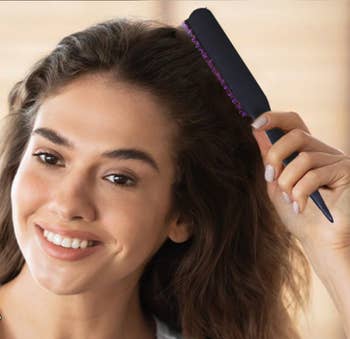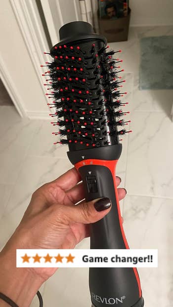 The oval brush design smooths the hair, and the round edges create volume — leaving you with a salon-worthy blowout at home. It also has two heat and speed settings and a cool option, and it's designed to work on all hair textures — reviewers with 2b–4c hair mentioned it worked for them.