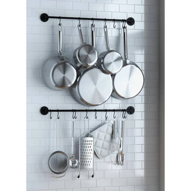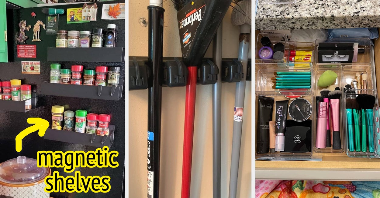 We hope you love our recommendations! While every product is independently chosen by our editors, BuzzFeed and our publishing partners may collect a share of sales or other compensation from the links on this page. You can read more about how our affiliate partnerships work in our Editorial Standards & Ethics Guide. Your space may be limited, but your organization options are endless. Promising review: "Bought this shelving to hold all my spices and have their labels visible. Holds everything securely, and the magnetic strength is exceptional. A very good buy." —evrhandyman Get a set of two from Amazon for $21.99 (available in several colors and in sets of four or six). Reviewers also use this on their washing machines, dryers, and metal doors. Promising review: "I don’t know if it’s just me, but I don’t like a lot of stuff on my countertops. This is just what I was looking for. It’s compact and a space saver. The magnet sticks really well. It doesn’t move when I tear off paper towels." —Latasha Jackson Get it from Amazon for $16.99 (available in black or white). You can also add a magnetic shelf to the top of your stove and store the spice jars there! Promising review: "Finally!!! We searched for a long time for spice jars that would hold a nice amount of spices. These are perfect! With a pour or sprinkle option, window to see the spice level, strong magnet, and space-saving square shape! We planned to just put our 'popular' spices in them, but we love them so much we are buying another set so we can have all our spices organized!!" —JT Get it from Amazon for $14.99+ (available in three pack sizes). This magnetic bar comes with mounting hardware and instructions to hang it up, and it is also compatible with Velcro or any kind of mounting tape. Btw, it's corrosion-, heat, and fire resistant, so you can mount it near the stove! Promising review: "I want to order another one!!! I wish I had thought to purchase one of these sooner. The magnet is strong and holds plenty of my everyday knives. I decided to put it on the side of my fridge, and it holds perfectly when you remove the back and stick directly on. I didn't need anything extra to hold it in place either. Now, I have more counter space." —RayJoni07 Get it from Amazon for $15.29 (available in six sizes and two styles). It comes with cup hooks for mounting, but you could always use Command hooks if that's your preference. macraYAYmacrame is an Indianapolis, Indiana-based shop that makes a variety of cool macrame accessories. Promising review: "Super quality, shipping was very quick. The piece is such a space saver and looks absolutely adorable. Functional and cute!" —Megan Johnson Get it from macraYAYmacrame on Etsy for $35. Promising review: "I have a ridiculously small bathroom and a super small vanity. After too many instances of my dryer and straightener falling to the floor, I went searching for an option to get them off the non-existent counter and onto the towel holder next to my sink. This product has done the trick — it helps me keep my counter space organized and provides me with a great, heat-resistant holder to place them in while I'm working through my hair. Highly recommend!" —Amazon Customer Get it from Amazon for $24.99 (available in three colors). Promising review: "These come with their hangers and will add considerable storage. I put one on the inside of our pantry door and the second on the back of the door going from the laundry room to the garage. I initially was interested in getting one for the pantry, but the second was a nice bonus, and it makes a great place to hold cleaning supplies. Well-made, excellent price." —Kimberlee This one will keep up to 48 pieces neatly arranged! And now, any time a guest says they need a fork, you won't have to jump up and say, "I'll get it!" while sprinting to your drawers to protect them from the horror. Promising review: "I thought this would be handy and help with space management in a small apartment. It turned out to be absolutely perfect. It keeps the silverware clean and stores a lot in a very small space. I love it. I got two because I inherited my grandmother's silverware, so there are two types of forks and two types of spoons, and I wanted things separate and organized. Two organizers fit side-by-side in a standard apartment drawer. After getting these, I picked up the knife organizer, and it’s just as handy and useful." —Magpie Get it from Amazon for $13.99 (available in three sizes/styles). The necessary mounting hardware is included. Promising review: "Exactly what I was looking for. Strong and sturdy, compact for my small kitchen. Attached easily to the back of my pantry door. Very happy customer here." —Paul Get a set of two from Wayfair for $41.99 (originally $54.99; available in two sizes). It comes with two wide bins, two narrow bins, one can dispenser that can hold 10 standard 12-ounce cans or juice boxes, and one egg bin with a stackable lid that can hold 14 eggs. Promising review: "It's nice to be able to find things in the refrigerator and be able to pull out the whole tray container to see what's in the back of the fridge. I don't know if this happens to you, but I find my way to the back every so often, and come to find out a jar in the back expired a year ago. Now I can see everything and use it." —BookBroke Get a six-piece set from Amazon for $36.99 (also available as a set of eight). Promising review: "This space saver K-Cup is wonderful! It is attractive and keeps my counter clutter-free. It is lightweight but very sturdy. I would highly recommend this for anyone wanting to gain valuable counter space." —christine h Fused Line is a Seattle-based small business that specializes in KitchenAid and coffee accessories. Promising review: "Such a nifty, lovely space-saving attachment! Got this for my sister, and she loves the aesthetic and how easy and practical it is to use." —GoldenTckt Get it from Fused Line on Etsy 