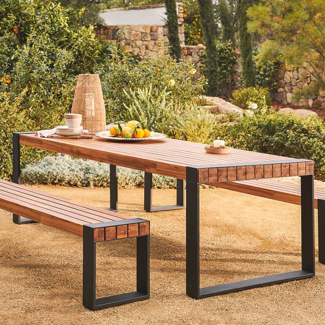 We hope you love our recommendations! While every product is independently chosen by our editors, BuzzFeed and our publishing partners may collect a share of sales or other compensation from the links on this page. You can read more about how our affiliate partnerships work in our Editorial Standards & Ethics Guide. Patio season can't come soon enough. From dining tables to planters, find everything you need to enjoy it. The set includes two benches and a table. Promising review: "It is so beautiful! High quality and easy to assemble." —Jamie H. Price: $1,929+ (available in two stains). Promising review: "Amazing value. Super sturdy/heavy and expensive looking." —Torre L. Price: $319 for two (originally $348; also available individually in two sizes) Promising review: "Great chairs! Perfect size for my little space. Nice weight, heavy enough to not blow around on the deck but can be easily moved and stacked." —Sara B. Price: $149+ (available in five colors and with or without arms) Check out the matching outdoor dining table, too. Promising review: "Love these chairs. Very attractive and sturdy. Easy folding for storage." —Kate D. Promising review: "I love this little table. It doubles as a stool for our kids on the deck sometimes. It's really sturdy and heavy, but still easy to move around. And the terrazzo style is so beautiful!" —Kelly H. Promising review: "I love my new coffee table. Everything is perfect. I really love the wood on the top of the table. Wow!" —Caroline B. Promising review: "Love this runner. Just what we needed to add warmth and texture, naturally!" —Monica M. Price: $349+ (available in two sizes and two colors) Promising review: "These planters are so simple and chic.. The planters are deep enough to plant all of your special plants, and include drip holes so the water can drain properly." —Chandler E. Price: $139+ (available in two heights and three colors) Promising review: "Solid! Looks just like the photos. Finish is beautiful and feels high quality." —Lindsey B. Promising review: "The cutest little pouf! An extra seat that’s easy to move around and finishes off a space nicely. The colour is perfection!" —Kayla C. Promising review: "Love this planter! Got this and the large one. They are true to the description and much more lightweight than I expected! Quality is very good." —Danielle S. Price: $99+ (available in two sizes and two colors) Promising review: "This is not your standard folding table. The wood is beautiful and works well on my patio." —Janice W. Don't forget to pick up an umbrella base to go with it. Promising review: "Love it. Easy to assemble, open, close, and tilt. Looks great and provides wonderful shade." —Patricia C. Promising review: "A great table, colorful, practical and a real addition to your outdoor living." —Ron P. Promising review: "Just as pictured! It’s sturdy, classic, and charming. Easy to assemble." —h j. Promising review: "Perfect outdoor chair, overall comfortable looks chic and sturdy. Love!" —Amber S. Price: $199 (available in two colors and as a set) Promising review: "These are perfect! And easy to put together." —Eileen B. There's also a similar style with a little more back support. The set comes with a stand and a lantern. Promising review: "I needed a reading lamp that couldn't be easily knocked over (like a table lamp), had some interest yet still casual enough to pull off a 'beachy' coastal vibe, and would fit in a narrow corner. The Bori Small Lantern set hit every target, PLUS no outlet necessary (i.e., no messy cords)! This handy feature means I can easily borrow and use the lantern when entertaining outside." —Cynthia M. These cushions work with the Callais chair. Price: $149+ (available in lounge chair, sectional, and sofa covers and three colors) The reviews for this post have been edited for length and clarity. BuzzFeed Shopping is service journalism first: our writers and editors spend all day shopping so you don’t have to, vetting products, fact-checking brand claims, and surfacing what actually helps in real life. We center readers over revenue, recommend products with authenticity (using real experiences, not ad-speak), and reflect our diverse audience, inclusive of a variety of price points, people, and needs. We cut through fake deals, favor useful info over glossy fluff, and recommend both budget and splurge options with context so you can decide what’s right for you — and still have a little fun along the way. Courtney Hayes is a freelancer who has been writing for BuzzFeed Shopping since 2019, covering a wide range of topics including home decor, fashion, beauty and skincare, gift guides, pet products, and more.