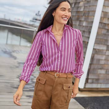 Promising review: "Every now and then, I stupidly purchase my tall small cotton blouses from someone other than Lands' End. I did that last month, couldn’t believe the poor quality at a much higher price point. So here I am. This shirt could be another label’s $125 blouse, but it wouldn’t even be non-iron. I have several of these, even a 20-year-old striped version that looks new. I swear I’ll never stray again, just keep making small talls, please!" —Dana