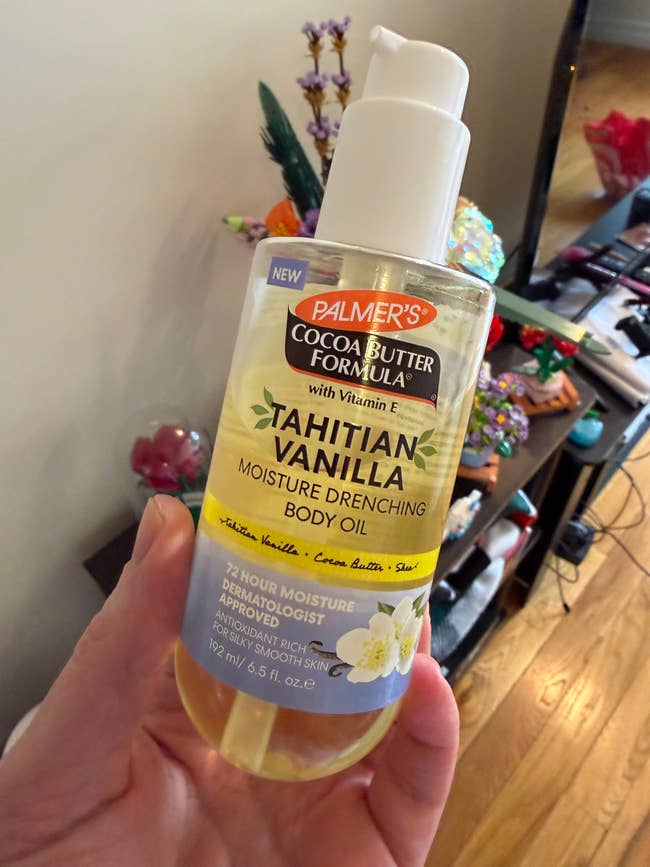 When it comes to body moisturizers, I'm much more of an oil fan than a lotion fan. I've recently discovered the joys of using body oil on damp skin right after a shower, and my skin has never felt smoother. When I found out Palmer's released their yummy Tahitian Vanilla scent in a body oil, I snapped it up immediately. First of all, it smells amazing. It's a light vanilla scent that somehow smells creamy and clean at the same time. It's basically Warm Vanilla Sugar's older, elevated, more sophisticated sister. And the formula is *chef's kiss* — it absorbs super quickly for a body oil and leaves my skin feeling silky smooth for hours.