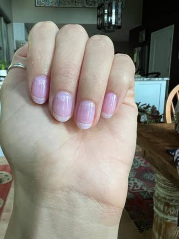 Promising review: "I like the subtle pink tone, which enhances the nailbed color; it gives my nails a little shine, but still looks very natural. The manicure lasts about two weeks, and I frequently have my hands in water. It seems to help strengthen my nails, so they don't chip and peel as much." —Bernice F.