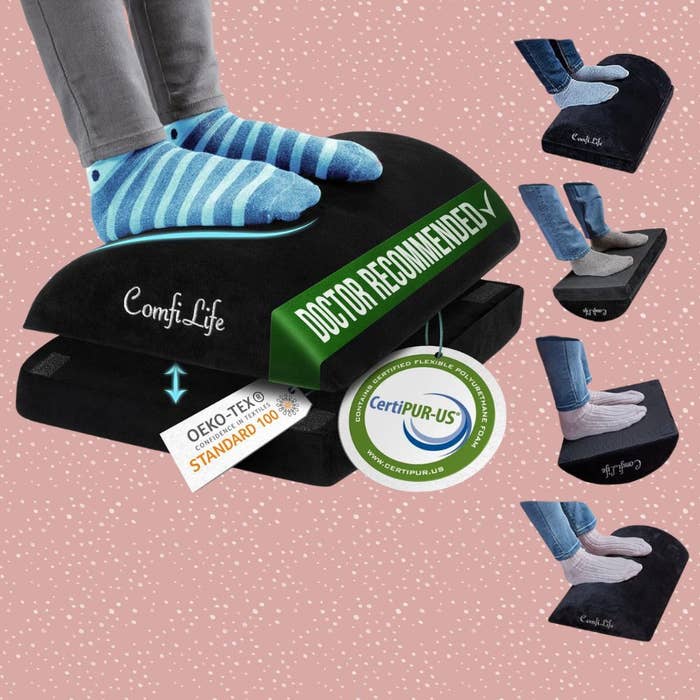 We hope you love our recommendations! While every product is independently chosen by our editors, BuzzFeed and our publishing partners may collect a share of sales or other compensation from the links on this page. You can read more about how our affiliate partnerships work in our Editorial Standards & Ethics Guide. Standing desks, ergonomic chairs and other affordable office additions that will nip this harmful habit in the bud. Alan Hedge, an ergonomics expert and professor emeritus for the human-centered design department at Cornell University, recently spoke with our reporter Monica Torres about desk shrimping and its risks. According to Hedge, despite its endearing name, being a desk shrimp comes with some long-term health risks. “You are creating a lot of muscle tension in the back as your body leans forward. You’re actually reducing air capacity to the lungs [and] restricting blood flow as you lean forward,” Hedge previously said. Even everyday headaches and body aches can be to blame. He said that, over time, this compression and added tension can cause injury either in the elbow, wrist, hip, neck or back, and can even cause conditions such as carpal tunnel syndrome, or even worse, disc degeneration. “The key to comfort and good health is to do computer work in a neutral posture – that means all parts of the body are in a comfortable range of motion,” he said. Hedge offered several adaptive habits that can help you maintain a position of neutrality and motion, but these changes are best achieved with the right desk items and setup. I reached out to Hedge myself to find out exactly what those office essentials were and how to use them. See his suggestions compiled in the list ahead. The experts consulted for this story do not necessarily endorse the products ahead unless otherwise noted. "Most computer work is done while seated – it stabilizes the body and is 20% less tiring than standing," Hedge said. For this reason, he claims that it's necessary to have a good ergonomic chair with easy auto recline, good low back support and allows for easy back movement while constantly supporting the back. "The chair should have a height-adjustable seat and height-adjustable armrests, [as] these reduce the strain of standing up and sitting down in the chair," he added. Based on these parameters, we found this under-$130 office chair that offers a unique recline function, allowing you to tilt the backrest (up to 120 degrees) or sit upright freely. With a load capacity of 330 pounds, this 360-degree swiveling chair has both a height-adjustable seat and armrests, plus ergonomic lumbar support that can be adjusted, depending on the degree of bolstering you need for your lower back. Get it from Amazon for $108.28+ (available in 16 colors). Hedge tells us to think about how someone sits to drive a car: the pedals are sloping upwards so the foot can rest comfortably on them while in a sitting back position. "In the same way, a sloping footrest is a great product to help the user sit back in their chair," he said. "If the footrest can also be rocked by the feet. This improves circulation and is less tiring over time." He didn't mention a specific brand, so we chose this popular option that's won 4.6 out of 5 stars on Amazon and has close to 14,000 ratings. Made from a high-density memory foam, this height-adjustable foot rest features a non-slip base to keep it in place, and can be turned upside down to allow for a rocking motion, as Hedge suggests. Get it from Amazon for $35.99+ (available in two shapes and three colors). "When sitting back, your [computer] screen center should be around eye level," Hedge said. "For that, a desktop monitor can be placed on a monitor arm, which makes it very easy to adjust position (height, angle)." We selected this adjustable monitor arm for its 4.6 out of 5-star rating on Amazon, across 15,600+ reviews. It promises great adaptability across a variety of monitor types and stability. Once your monitor is attached using the quick screw installation, your screen can tilt, swivel and rotate 360 degrees. Get it from Amazon for $35.99+ (available in two colors). If you don't use a large monitor and are just bound to a laptop for work, then Hedge suggests using a laptop riser and a separate keyboard and mouse, which achieves the same thing as a monitor arm and keeps the head and neck in a neutral posture. We found this laptop riser and Bluetooth keyboard and mouse set, which, together, offer ergonomic functionality for laptop users. The portable laptop riser, which is compatible with laptops up to 17.3 inches, can securely hold computers at a posture-appropriate angle. The ergonomic keyboard is also tilt-adjustable and comes with a detachable magnetic wrist rest and comes in a variety of color options. Get them from Amazon: the riser for $35.99+ (available in five colors) and the keyboard and mouse for $32.29+ (available in 27 colors). "If working with paper documents, a document holder is great because it raises the paper to eye level, which minimizes neck strain," Hedge said. This is a popular choice by 3M, which features a frame-style design that keeps documents secure and upright using a height-adjustable clip and a non-slip base. It can hold up to 150 standard sheets of paper at a time and can fold flat when not in use. "A freestanding task light can also be helpful for shining light on paper documents without shining light on the computer screen," Hedge said. We took his suggestion and selected this sleek and dimmable LED desk lamp that features five light modes and five brightness levels, including soft, warm lighting to reduce eye fatigue. This space-conscious light is also height-adjustable with a tilting arm. Get it from Amazon for $21.99 (available in two colors). Experts previously spoke to us about the benefits of posture garments, such as posture bras and T-shirts. Based on this guidance, we covered this popular full-back posture brace, which is