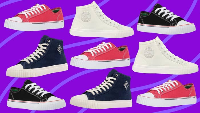 We hope you love our recommendations! While every product is independently chosen by our editors, BuzzFeed and our publishing partners may collect a share of sales or other compensation from the links on this page. You can read more about how our affiliate partnerships work in our Editorial Standards & Ethics Guide. If you’ve been looking for a canvas sneaker that still offers foot support, I can’t recommend grabbing a pair of these classic kicks enough. Created in 1937 with the brand’s signature “Posture Foundation” (PF), the shoes were made with a wedge insert in the sole, intended to give athletes cushion and support when wearing them during sporting events. Today, their textured duck canvas kicks still have this wedge comfort insert and a rounded toe box with eye-catching vertical ridges that reviewers say give them welcome room to wiggle. And the size chart offers guidance for both men’s and women’s sizing, making them a good fit for everyone. “First off let me say this, the fit, comfort, and support are unmatched. This was my chosen footwear for music festivals and I can stand all day and not feel like my shoes were the cause of discomfort. Besides, who doesn’t love to run faster and jump higher?” —Aaron Bentley “Best shoes on the market. That’s not a literal headline, but a personal one. I will be wearing them for the rest of life. So comfy and good to my feet. Easy to walk on all day long. And they look so classic and good. I fetch compliments with these all the time. “ARE THOSE CONVERSE?” ...No no no honey, these are PF Flyers... “Ah okay I was gonna say they just looked cooler for some reason”... This interaction happens all the time. Either that or I get paid my respects for knowing what PF Flyers are. If you’re a converse fan, come join the other side.” —Lauren O.M. “More comfortable than converse due to the arch support and cushion insole. Color was true to picture. Great looking good quality shoe especially for the low price.” —JB “I really like the retro look and they are comfortable. Wore them all day and no issues. Great shoes.” —No Way Jose “The shoes are perfect and very comfortable. They are more comfortable than the chuck taylors that i normally wear.” —Thyrone Harris “I’m an Emergency Room Nurse - I work six 12 hour shifts in a row. I work every shift in my PF Flyers Center High (Kelly Green). I get tons of compliments on them, but I wear them because they are comfortable and secure when I’m running around the department. Unlike Chucks, they have a comfort insole that supports my feet. Canvas is washable in the event I get some fluid spilled on them. They are great shoes.” —E. M. Hunt “Hard to believe buts these shoes are far more comfortable than Converse! I actually like to sole, toe, the material AND the insole is nicely padded and shaped to our arch of our feet! Love these shoes!” —Kittie Reviews have been edited for length and/or clarity.