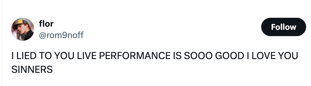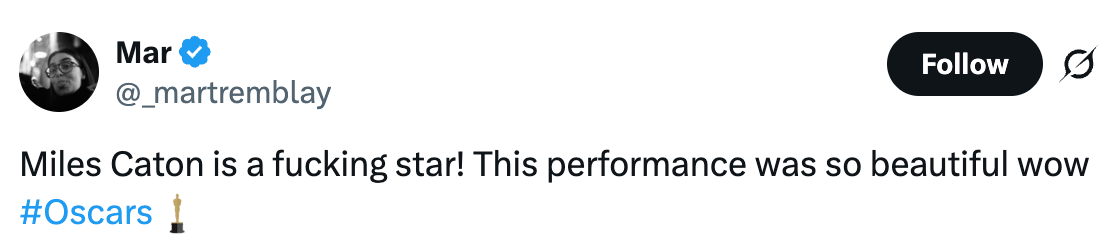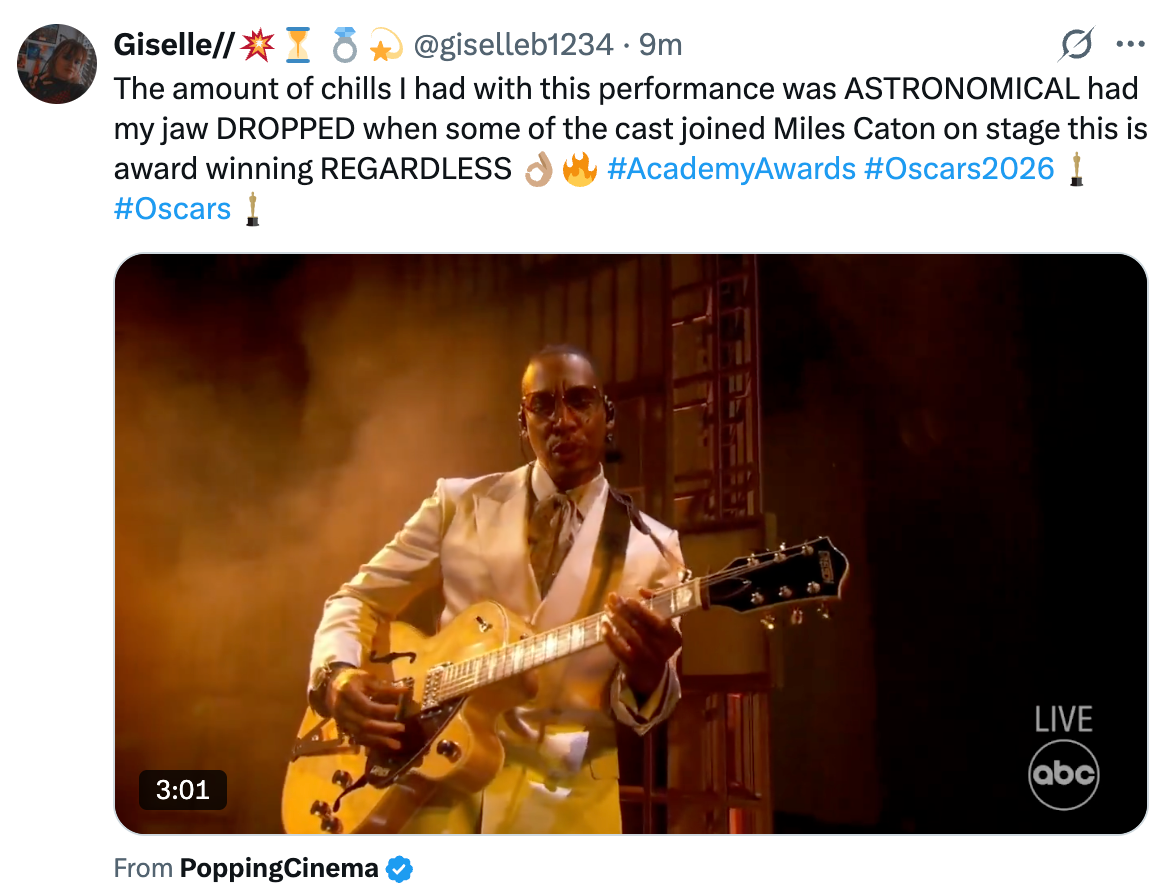 "Misty Copeland comes out of retirement to put Timothée Chalamet in his place during a live ‘Sinners’ performance at the #Oscars." If you must know, I based my entire personality on Seasons 2-5 of "Girls," and I'm a huge gamer. Misty Copeland comes out of retirement to put Timothée Chalamet in his place during a live ‘Sinners’ performance at the #Oscars. pic.twitter.com/EhUIOEw8jg Chalamet when Misty Copeland dances by pic.twitter.com/jpIt3oSUuZ Seeing Misty Copeland back on stage with the Sinners cast and dancers after a hip replacement. Crying tears of joy. #Oscars pic.twitter.com/Zw6z9Ibztz Baby they ain’t even start singing and I was toe up. That juke joint scene MEANS SOMETHING TO ME. #oscars pic.twitter.com/160IGGUqqL Sinners performance giving the ballet dancer a solo with Timothée in the front row pic.twitter.com/LUtayD52gl