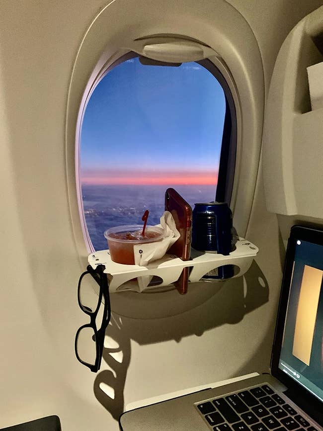 We hope you love our recommendations! While every product is independently chosen by our editors, BuzzFeed and our publishing partners may collect a share of sales or other compensation from the links on this page. You can read more about how our affiliate partnerships work in our Editorial Standards & Ethics Guide. These products + repeating the mantra, "I saved hundreds of dollars sitting here," should do the trick. Limited leg room, narrow seats, lack of head support, constant noise, and next to no recline... the cons of economy go on, but for many of us, first-class just isn't in the budget. While we can't *literally* make more room for ourselves, there are some clever products out there that make the experience more tolerable. Ahead, we've got purpose-designed travel hoodies, noise-blocking over-ear headphones, hydrating skincare sets, inflatable foot rests, compression socks, anti-bobblehead pillows, and more. A Trtl travel hoodie with a slew of purposeful design details, including a zippered pocket for important documents, lower armholes so it's easier to put on and take off in tight spaces, and a triple-layered "Hush Hood" for noise reduction. That last one really comes in clutch, and helps you ensure some quality shut-eye, even if you're seated right next to the bathroom where there's a constant line of people making small talk. PS: This comes from the makers of the uber-popular Trtl travel pillow, which features a unique, scarf-like design. Get it from Trtl for $69.99 (originally $140; available in women's and men's sizes S–XXL and in two colors). A pair of Bose QuietComfort Ultra headphones with next-level noise cancellation so you can shut your eyes, turn on a podcast, and forget you're stuck in the middle seat. Of course, when meal time rolls around, you can switch from "Quiet mode" to "Aware mode" so you can hear the flight attendants asking if you want chicken or pasta. Oh, and they also have up to 30 HOURS of playtime, so if you fall asleep with something playing, you won't kill the battery. Promising review: "I was so excited to receive these bad boys! As a long-time fan of Bose, I couldn’t wait to get my hands on the Gen 2 headphones and they did not disappoint. First off, the sleek design is beautiful, and I love how easily the earpieces fold for storage. I recently wore them on two flights, and wow, I’m impressed. They were incredibly comfortable the entire time. Over-the-ear headphones usually leave my ears sore after long use, but with these, I actually fell asleep wearing them and had no discomfort at all! The noise cancelling is truly top-notch: it completely blocks out the world around you. I also appreciate the included carrying case, which makes traveling super convenient. And best of all? The USB-C cable! Those are surprisingly hard to come by these days, and honestly, it was a big selling point for me. Overall, the Bose Gen 2 headphones live up to the name and reputation. If you’re looking for comfort, quality, and great design, I highly recommend them!" —Krucifixo Get them from Amazon for $425+ (available in five colors). A seat-back organizer that slides over the tray table so you don't have to touch any icky surfaces or dig around in that communal pocket of crumbs looking for your misplaced passport. It's machine washable, so after your flight, you can toss it in the wash and then use it again! PS: The genius Airplane Pocket is a small biz! Check out a TikTok of the Airplane Pockets tray table cover in action. Here's what BuzzFeeder Emma Lord has to say: "I used this on a round-trip from NYC to Tokyo, both with connecting flights in Canada, and cannot sing its praises enough. It fit all four of the different tray tables I used it on and was so ridiculously handy for keeping track of all my littler odds and ends like AirPods, the plane's headphones, earplugs, a sleep mask, a book, gum, a scrunchie, and little snacks. The hanging end of it easily tucked into the built-in sleeve of the seat in front of me for takeoff and when other passengers needed to scoot past me in my aisle seat. Usually, I feel like a hot mess and get frustrated rooting around in the grimy sleeve for my stuff, and this was such a refreshing solution! Several flight attendants even asked where I got it to buy one for themselves!" Promising review: "Every time I whip this thing out, someone leans across the aisle, asks what it is, and then makes a note to buy one when they get home. On a long-haul flight, it's simply a must for organizing your reading materials, headphones, sanitizing wipes, etc. My favorite use for this thing is when I've fallen deep asleep along the way, only to wake up in a fog and in a rush to deplane. Instead of having to hastily dig things out of the seat back pocket, I just slip the entire thing off of the tray table, pop it in my bag, and worry about sorting things out when I get to where I'm going — safe in the knowledge that I didn't leave anything behind. Love it!" —justinglen A nifty universal phone mount so you can pass your high-altitude hours *finally* catching up on the latest season of Love is Blind. Your budget seat might not have come with its own built-in screen, but this works just as well. PS: You can also clamp it onto your suitcase to watch stuff while you wait to board. Promising review: "I bought this gadget about six months ago for a multi-leg, ultra-long-haul trip, and it more than held up the entire duration. I was able to finagle it to fit the tray tables on different planes and like others, I find the height just nice when clamped onto a stowed tray table. It also works on my roller carry-on handle during layovers. However, I find myself using it a lot outside of travel, too! Work-wise, I've clamped it onto my office desk shelving to hold my phone at eye level beside my computer. At home, I simply clamped it to a deck of cards and it turns into a versatile stand that I can place on any flat surface. Heck, I've been using it to h