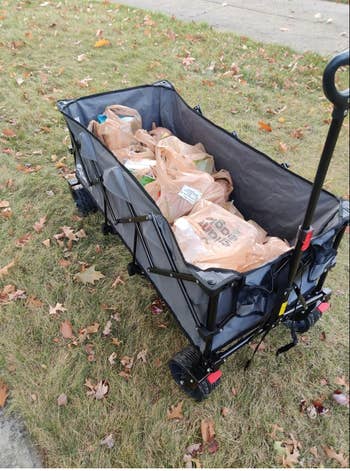 Promising review: "I've had this for almost a year. It's excellent. Durable, easily maneuverable. My eight-year-old nephew can pull it with his brothers and beach picnic items inside. I pull it easily full of heavy groceries on grassy, uneven ground. Folds away very easily. Worth every cent." —Anjay Ennis