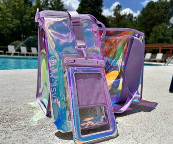 Promising review: "OK, I’m not going to sugarcoat this. I am obsessed with bags, cups, and all things pink. I did not think that I would like this purple bag, but it is absolutely gorgeous, especially in the sun. It’s large enough to hold everything, and then some, that I took it to the pool. There are no scratches on the bottom so it holds up well and I it's so supportive I could probably put my 3-year-old grandson in it. This is by far the best bag I have ever purchased. Yes, I have the entire set and I LOVE IT!!! OBSESSED!!!!" —The Twisted Mommy