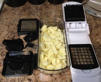 Promising review: "Makes life so much easier. I can't imagine chopping onions or bell peppers by hand anymore, and it does so much more. This requires very little effort to cut through the food, and it has a generous container." —Amazon Customer