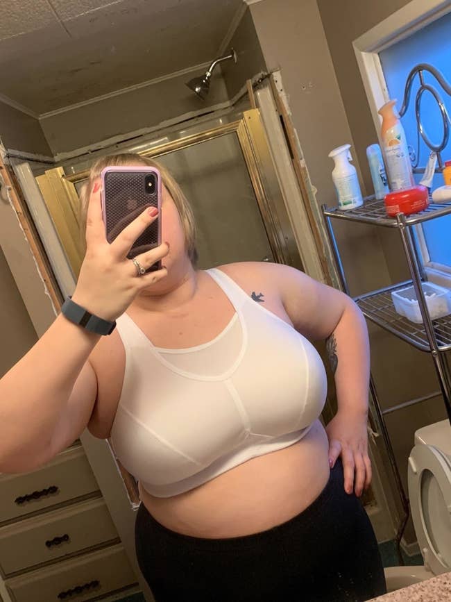 "I love this bra! I am 136 pounds and wear a 34F/34DDD, and this bra is so supportive. And it makes [my boobs] look good too, which is a plus because some bras make your boobs look weird lol. This bra is so comfortable, and it has three hooks instead of two, which is a big deal for me. I’ll definitely buy more." —Chelsea Belcher