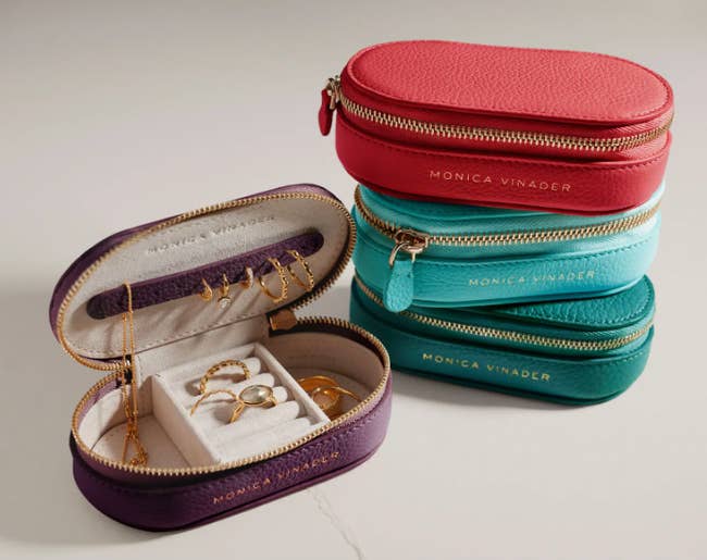 Promising review: "I don’t have a big collection but would still like to keep everything organized when traveling. These cases are perfect in size and quality is good. I like the removable stud strap that I can use to keep my necklaces in place. Extra compartments are nice for things in unique shapes, such as hairpins or soft bracelets." —Niwk