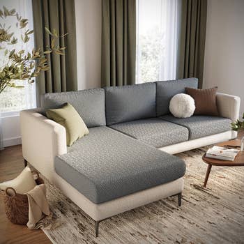 Not only do these covers have anti-slip backing, but they're also fitted to each individual couch cushion, so they're reallllly on there, ya know? Made of premium jacquard fabric (with a chic cross-hatch design) and a bit of Spandex, they won't wrinkle *and* will look like they've been shaped specifically for your couch. They're also water-resistant and offer stain and scratch protection if you're into that kind of thing.