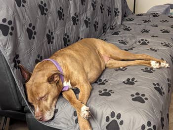 Featuring a five-layer design topped with 100% waterproof TPU, this couch cover has all your basics, well, covered! It's got slip-resistant backing made of silicone because your sleepy pup tends to toss and turn when napping. I bet they're dreaming of running in the park.