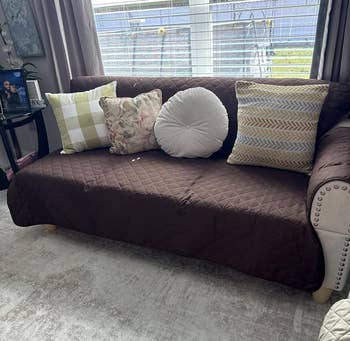 Promising review: "I really appreciate this cover for several reasons. It’s soft to the touch and complements my neutral-colored sofa nicely. I also love that it’s washable, which makes maintenance easy. The grippy bottom prevents it from sliding around, and it has a streamlined design that isn't bulky. Overall, it’s a practical and stylish addition to my dog-friendly living space." —DMR