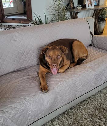 "I have two 100-pound dogs, and these couch covers have been great. They do not slide off the couch, and the fabric is thick, so no toenail rips in the fabric at all. Will definitely buy again." —Af N.