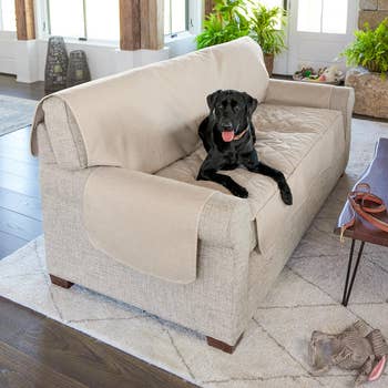 Why so expensive? Well, it's an incredibly durable, waterproof, quilted upholstery whose fur-masking micro-weave gives it a linen-esque appearance. It wraps around the seat, back, and arms of your couch, which means full coverage, babe. And if you're looking for something that was designed with sustainability in mind, you should know that this is made with 100% post-consumer recycled polyester.