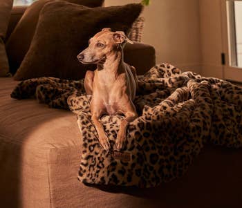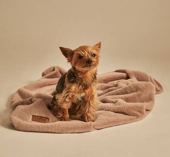 This small, faux-fur blanket is completely vegan and cruelty-free! Its plush and velvety texture might just remind your doggo of cuddling up with their litter. You can lay this on your couch, bed, or floor, or use it to wrap your pup up like a burrito! It's water-resistant, so they can drool in their sleep and not create a little lake that soaks into your couch.