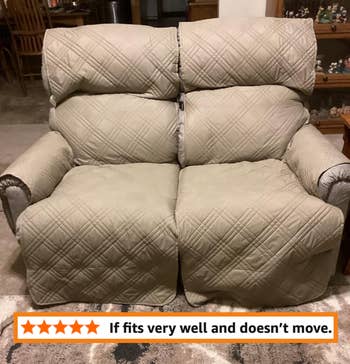 Promising review: "This is one heavy-duty, durable couch cover. And it stays in place! It's attractive and doesn't show dog hair. It's expensive but worth every penny!" —Rsepiphyte