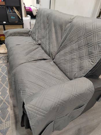 "Fits my couch perfectly and prevents dog fur from getting in between my cushions. I was vacuuming my couch roughly once a week, if not more frequently, because my foster pup loves to roll around on the couch. This thing definitely makes those deep cleans a lot easier." —Alyssa