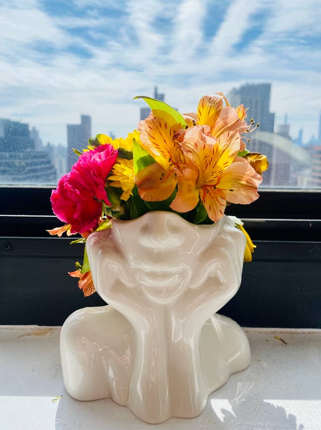 Here's what BuzzFeed Shopping editor Emma Lord says about it: "I purchased this because I have a lil' Friday tradition of going to Trader Joe's and buying the $3.99 'petite bouquets' (Alexa, play 'Flowers' by Miley Cyrus!!) and it is the absolute perfect size for a mini bouquet. It is a treat to look at on my windowsill, 11/10 recommend for anyone who wants a bright spot in their living room!"