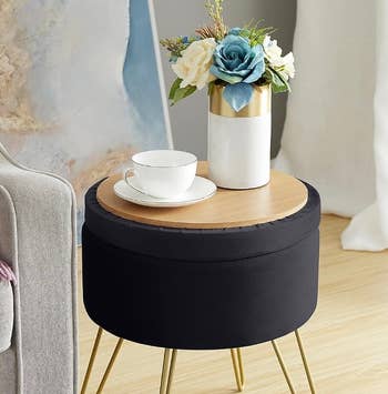 Here's what BuzzFeed Shopping writer Emma Lord says: I recently got one of these for my new apartment to stash my candles and ~candle accessories~ in and it's pretty much become my favorite piece of furniture?? I use it to prop up my feet during work hours, and sometimes, if I want to eat on my couch, I'll use it as a tray. It's also sturdy enough to sit on, if I ever wanted to have guests over and needed an extra chair. It was RIDICULOUSLY easy to set up — I had it done in less than 10 minutes, and probably didn't even need the directions. It also just looks so darn cute (and comes in so many colors that I'm tempted to buy another!).