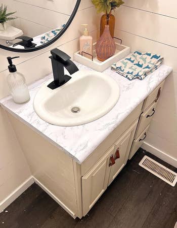 It took most reviewers less than an hour to completely revamp their desks, and it was two hours *tops* for others (depending on how much space you're redoing!). Psst: If you pick this up, check out this reviewer's great installation tips for applying it to a desk!