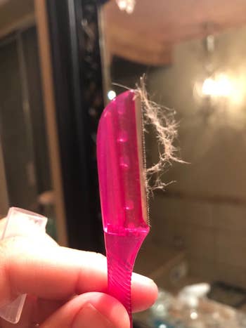 Promising review: "My cheeks, neck, forehead, and chin are covered in a fine, ever-growing peach fuzz. If I cease shaving, I shall acquire a boat and thus be dubbed 'Blondebeard.' My mustache is darker and thicker, something I think a lot of women experience. I have been shaving for a while with a men's razor and shaving cream, but it just couldn't give me a close enough shave. ENTER SCHICK SILK TOUCH-UP! Holy wow! I've been dry shaving my entire face and some of my neck with these and no irritation, plus it is the closest shave I have gotten. No pulling or scraping like other 'mini razors.' It's quicker than doing what I call a 'dad shave' in the shower, and I can see what I'm shaving because I'm at my makeup table and there's no shaving cream obstructing my view (I don't want to accidentally hack off the hair by my ears or forehead). Plus, I compared this to other (what I call) mini razors, and it's twice the size. So very efficient for doing your whole face, easy for detailing those brows. I love this product and hope that they sell it forever. It works on my peach fuzz, mustache, and brows. If I ever get word that they are going to stop making them, I will hoard them all." —Dr. Eleanor Abernathy
