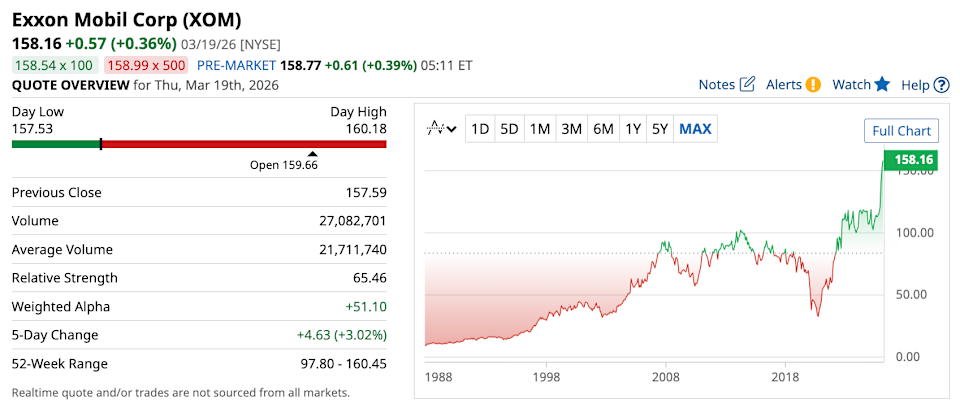 The war in Iran and rising oil prices are driving up pump prices. The problem is that oil is an integral part of transportation, manufacturing, and other essential parts of the economy; it helps keep everything moving. While inconvenient, it certainly raises a question about energy stocks and whether now is the right time to cycle in. And when investors look for big names in the sector, Exxon Mobil and Chevron are usually at the top of the list. Both are oil giants, but their approach is somewhat different. But how different, exactly? And how does that difference factor into which stock is a better choice for income investors? Markets move fast. Keep up by reading our FREE midday Barchart Brief newsletter for exclusive charts, analysis, and headlines. Let’s find out. First is Exxon Mobil, the larger of the two companies. It operates in oil production, refining, and chemicals, giving it one of the strongest footholds in the energy market. With a market cap of around $656 billion, it is one of the biggest energy companies in the world. ExxonMobil stock is trading at approximately $158, and it is up nearly 37% year-to-date. Second is Chevron, nearly half the size of its rival, but still one of the most recognizable names in the sector. Like Exxon Mobil, it operates in oil and gas production and refining. With a market cap of around $396 billion, Chevron remains one of the largest energy companies in the world. Chevron stock is trading at about $201, and it is up roughly 32% year to date. Exxon makes money from producing oil and gas, refining crude into fuels and other products, and selling petrochemicals. It has a great presence on the value energy chain, which makes its positioning more balanced. So in short, Exxon produces, processes, and sells oil-based products. Meanwhile, Chevron is very similar, but with a slightly different emphasis. It also produces oil and gas and operates in refining, but its business is generally more centered on production than Exxon's. This difference gives Chevron a somewhat simpler setup while also tying it more closely to the ups and downs of oil and gas prices. Put simply, Exxon looks more balanced across the energy chain, while Chevron is more closely tied to production. Here’s what the numbers look like based on their latest financial reports: Metric (Latest quarter) Exxon Mobil Chevron Sales $82.3 billion $46.9 billion Net Income $6.5 billion $2.8 billion Operating Cash Flow $52.0 billion $33.9 billion Forward Price/Earnings (P/E) 22.54 27.32 Right away, last quarter, we can see Exxon has more sales, coming in at $82.3 billion, well ahead of Chevron’s $46.9 billion. Not only that, but net income is also higher for Exxon at $6.5 billion versus Chevron’s $2.8 billion. Cash flow tells pretty much the same story. Operating cash flow, a metric that tells how much cash a company generates from its core business operations, favors Exxon with roughly $52 billion, compared with Chevron’s $33.9 billion. Now let's talk valuation. The price-to-earnings ratio, or P/E, compares a company’s stock price with its earnings, helping investors decide whether a stock is expensive, cheap, or reasonably priced. Lower is generally better, but it only really means something when compared with the broader sector. The energy sector has a median forward P/E of around 16. As a result, both stocks look expensive based on that metric, though Exxon looks a bit cheaper than Chevron. This may be because investors are willing to pay a premium now, expecting solid performance going forward. Overall, if you are looking for the better value play between the two, Exxon appears to be the better buy because it has a lower P/E ratio and stronger results across sales, earnings, and cash flow. For income-focused investors, this is what you might be waiting for. Exxon pays a forward annual dividend of $4.12, translating to a yield of around 2.6%. It has a dividend payout ratio of 56%, meaning it pays out only 56% of its earnings to shareholders. The company has increased dividends for 43 consecutive years, and payouts have increased 15% over the last five years. Meanwhile, Chevron pays $7.12 yearly, translating to an approximate 3.5% yield. That’s almost 1% higher than Exxon. Chevron has also increased its dividend for 39 consecutive years and boasts a higher 5-year increase at 33%. However, all this comes with an astronomically high dividend payout ratio of 95%. Based on the dividend data, I’m leaning more towards Exxon as it has far more room to grow the dividend in the future. The yield and growth are lower, yes, but the company has a much bigger headroom to continue and increase its dividends more reliably. So, how does Wall Street rate these stocks? A consensus among 28 analysts rates Exxon a Moderate Buy” with an average score of 3.89 out of 5. The $186 high target price suggests up to 18% potential upside. On the other hand, a consensus of the same number of analysts rates Chevron a “Moderate Buy,” with a slightly higher average score of 4.04. The high target price of $242 suggests a 20% upside potential. When all is said and done, both Exxon and Chevron look like solid picks in the energy sector. And frankly, the better stock depends on what matters more to you. Exxon stands out for its larger scale, stronger financial results, and a better ability to grow its dividend in the future. It also has a broader business mix, which gives it a more balanced setup across different parts of the energy market. Meanwhile, Chevron could look better to investors who place a greater premium on higher yield today, at the expense of reduced dividend growth in the future. On the date of publication, Rick Orford did not have (either directly or indirectly) positions in any of the securities mentioned in this article. All information and data in this article is solely for informational purposes. This article was originally published on Barchart.com