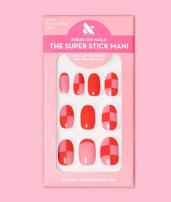 You'll get 32 nails and damage-free tabs in this compact box. To use, add a tab to your natural nail and then hold the press-on onto your nail for 30 seconds. That's it! They should last up to a week, with many reviewers saying they lasted around two weeks.