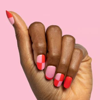 Promising review: "These tab press-ons are perfect! They have it all: fun colors, a cute pattern, and they're so easy to apply. I got so many compliments on these, and I did them from the passenger seat of the car. If you're going to get one pair of tab press-ons, let it be these!" —Taylor F.