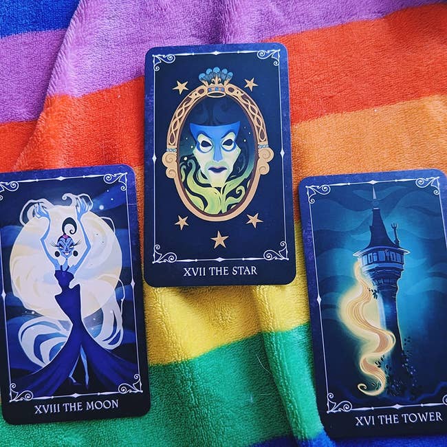 Promising review: "I've been wanting to dive into tarot for some time now. I wanted to find a deck that I could relate to. I've always related to the 'bad guys' in Disney. If you think about it, they're not really bad, just misunderstood. Anyway, when I saw this deck, I knew I had to have it. The pictures are absolutely beautiful. The sturdiness of the cards is amazing. I don't feel like I'm going to crush them as I shuffle. The guidebook is very informative, with actual examples of interpretations. I'm very pleased with my first tarot deck." —kinni