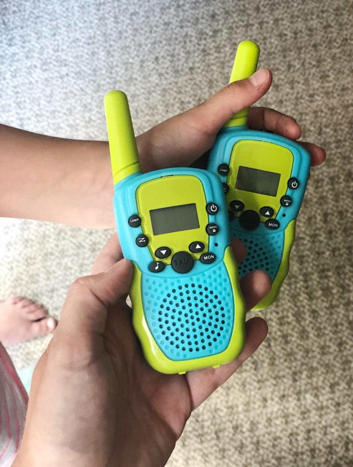 Promising review: "We use this as a way of keeping in contact with our oldest. We live in a safe and friendly neighborhood where she likes to play outside and run around with all the other kids. I check on her often, but for extra security, I got a set of these and now we can talk back and forth whenever. 'It’s time for dinner!' 'OK mom, I’m coming!!'" —Jennifer