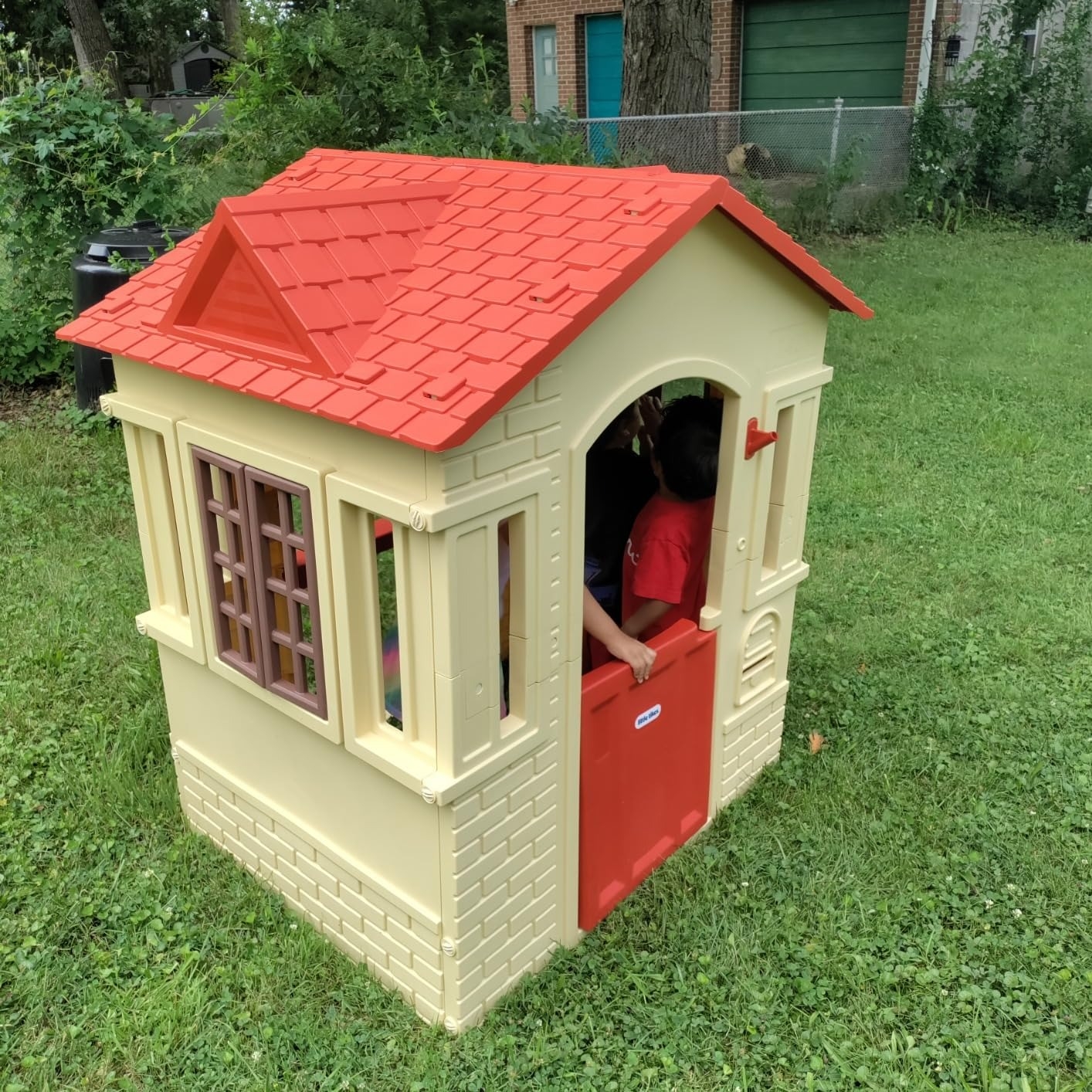 Promising review: "What a fun and cute playhouse! The sizing and sturdiness are great. It survived Hurricane Helene — need I say more? My little one loves playing and sitting inside of it! It does not fold, but it does not take up too much space in our yard. It’s a great asset to our yard!" —Charli