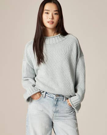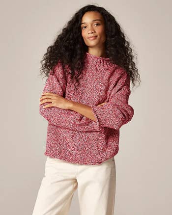 Promising review: "This is the perfect sweater for the transitional weather between the end of winter and the beginning of spring. The white contrast makes it look fresh and the fit is perfect. It's not oversized or cropped!" —anonymous