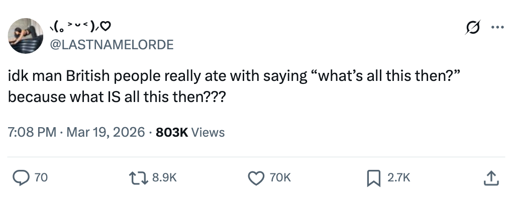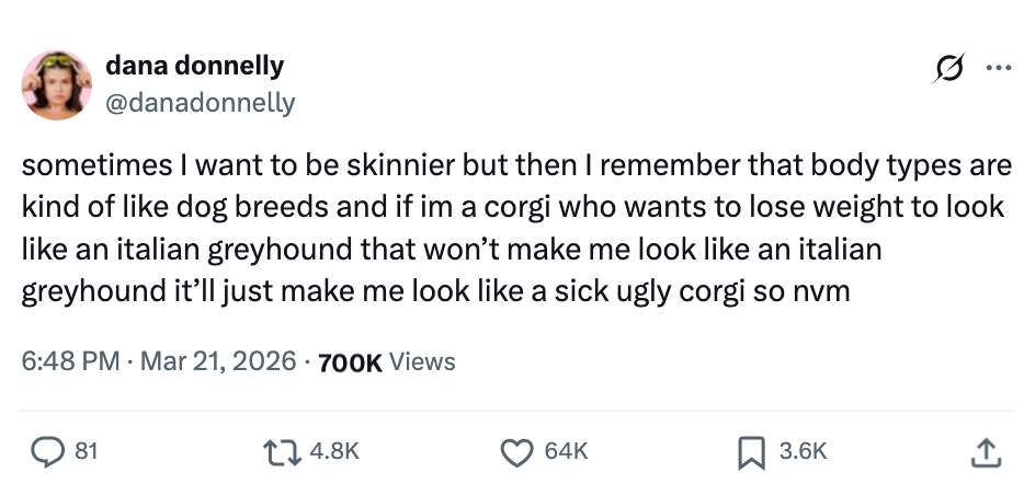 I'm Chelsea, the Weekend Editor at BuzzFeed, where I cover everything from pop culture and politics to TV and celebrity news. While we can't endorse what X has become, we can bring you the worthwhile moments that still exist there, curated and free of the surrounding chaos. Also, make sure to follow these users if you like their tweets! How it feels to skip a song that was once your most listened to pic.twitter.com/lDFfeVECy3 RSVP’d to a birthday and we’re running a 5k pic.twitter.com/dWQ3d8GkRO When you ask who's going to be there and the names start sounding like you're staying home: pic.twitter.com/ApTaAHXG4t Went paint balling for the first time and got hit in the neck in the first round pic.twitter.com/Z96Rb0IPeg POV: People with astigmatisms driving past someone with LED headlights pic.twitter.com/UzCK1mGSQD seeing something is coming out in 2028 and thinking that’s 8 years away pic.twitter.com/exDNykd0Q5