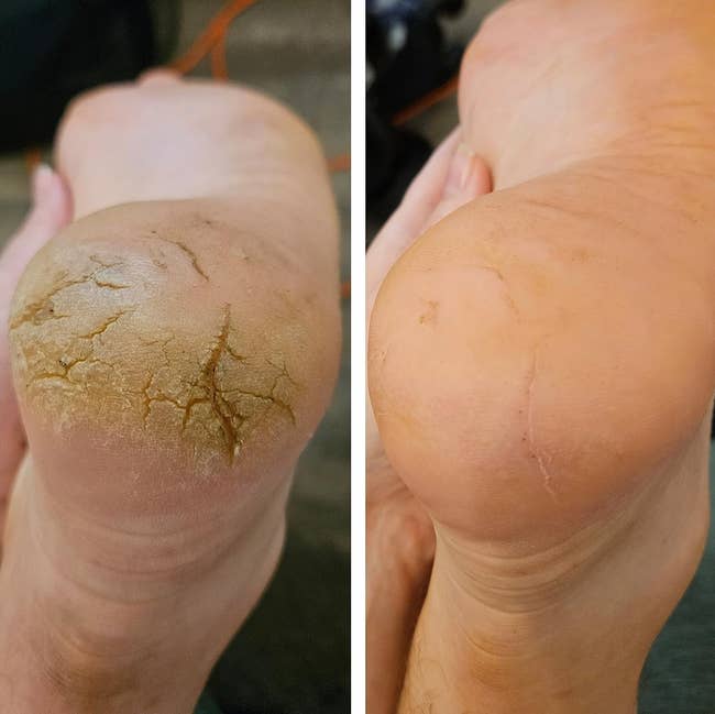 Promising review: "Holy moly — BABY SOFT FEET. I wish I had taken before and after pics! I followed the instructions and everything worked better than I expected. I sat on the side of the tub and soaked my feet (while reading and sipping wine) I used a pumice stone on my feet while they were soft, then I put on a pair of gloves and generously applied the gel, timed it for three minutes then used the pumice stone after I rinsed and washed. I had baby soft heels — better than getting a pedi. I will forever use this product. My only regret is not having found it sooner. Btw, I’m a 65 y/o granny, and it was super easy." —Caribare