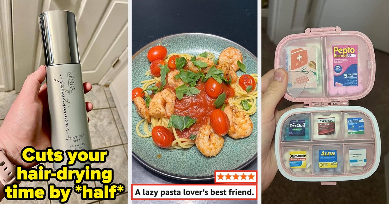 We hope you love our recommendations! While every product is independently chosen by our editors, BuzzFeed and our publishing partners may collect a share of sales or other compensation from the links on this page. You can read more about how our affiliate partnerships work in our Editorial Standards & Ethics Guide. Being a human is hard enough, so you might as well have 36 problems *less*. Promising review: "This made my life so much better with chopping onions and other veggies! It’s so quick and easy. One tip is to make sure you cut your veggies small enough so that it’s easy to push down the handle. Big chunks are a little harder to chop. Please be careful with cleaning; the blades are super sharp." —Tasha BuzzFeed Shopping contributor Sam Wieder has good things to say about this! Check out her Fullstar veggie chopper review. Get it from Amazon for $26.99+ (available in four colors and five sizes). Promising review: "Colors on the trackers make it easier to find in purses, etc. A nice improvement over the standard tracker. Nice and loud, too." —Nunya Bidness Get a four-pack from Amazon for $49.44 (available in two color packs). This contraption provides 360-degree support thanks to a wraparound design and clips that connect it to your seat's headrest. I am a notorious non-sleeper on flights. Like...most of the time I don't even try because it is so difficult for me to get comfy and *stay* comfy. It also doesn't help that I'm a tall girlie (5'9!) and have a long torso to keep upright. So when I came across this gem, I had to try it. Thankfully, I received it just before my 15-hour flight to Switzerland — the ultimate test! It was so comfortable and supportive, I literally drifted off to sleep faster than ever and forgot where I was (seriously, I missed the snack service). This has never happened to me on a flight! No bobblehead. No slowly having your bodyweight drift toward your neighbor's shoulder (awkward). I can't even tell you how many travel pillows I've tried before. This beats them all by FAR. Trust me, this'll earn (and keep!) a place in your luggage. Promising review: "Just took a 15-hour flight with this travel pillow, and this was the best travel pillow by far. I've used inflatable and memory foam neck pillows before; the major problem is that they don't secure your head and torso, so either your muscles have to hold up your body, or your head and torso will end up swinging around, and both are disruptive to sleep. With this travel pillow, my muscles can relax, and the padded eye mask will hold up my head and torso. One minor downside is that the pillow needs to be mounted on your seat's headrest; if someone bumps your seat, it can be disruptive, but this rarely happens. Its size and weight are also much less than memory foam neck pillows, and I don't have to bring an extra eye mask, so it is very travel-friendly." —Sky Get it from Amazon for $17.84+ (available in nine colors). It's also been known to work for postoperative and chemotherapy-induced nausea. It applies pressure on your wrist to help ~restore balance~. Read more about acupressure and nausea at Memorial Sloan Kettering Cancer Center. Promising review: "I'm eight weeks pregnant and have had morning sickness nonstop every single day, and it has made my appetite go away so much that I feared for my baby's health. I needed a quick fix so I could eat again. It worked amazingly. I went to Denny's and ate my weight in pancakes! It feels so good not to feel nauseous all the time." —Kindle Customer Get it from Amazon for $8.53 (available in six colors). Promising review: "I was extremely skeptical about this product actually working at first. I saw this on TikTok and started reading the comments, which were all positive reviews, so I decided to try. Let me just say I no longer have to awkwardly run to the bathroom after my fiancé and I do the dirty. This product works!" —brittany simmons Get a pack of 20 from Amazon for $26.69 (also available in a 10-pack). One side is the curved wing stamp, and the other is a regular fine tip liner for defining the rest of the eye. It comes in a pack of two; one for each eye. The Flick Stick comes from a New Zealand–based brand and small business, Lovoir Beauty. Promising review: "Got this before a trip I took a few days ago. I have never been able to do wing eyeliner properly, so I was excited to try this. It's very pigmented and goes on beautifully! I've tried other liquid eyeliners before, and they were so watery and not close to the dark black I wanted at all, but this product was great. I did my makeup and put this eyeliner on at 9 a.m., traveled two hours, walked around a city for about three hours, and it was warm, so I was sweating, and then went to an NBA game. After all that time (about 16 hours!), the eyeliner was just as perfect as I had put it on! I love this product and can't wait to use it more often!" —Elizabeth Get a set of two from Amazon for $17.99 (available in two sizes and a combo pack). I spent three weeks traveling through eight different European cities, and let me tell you — bringing these sandals with me was probably one of the best decisions I've ever made. My most worn pair of shoes during my trip, hands down. The reasons I was on the hunt for comfy sandals were 1. I didn't want my feet enclosed all day while trekking the whole city in warm weather, and 2. Some outfits simply pair better with sandals. I hiked up to the Acropolis of Athens in these babies, and that stone floor was slippery. And still, out of my group of 11 family members and friends, I was the first one to make it to the top (and yes, I did brag). I even told two of my friends that went with me to get these for the trip, and they were eternally grateful for my rec. Promising review: "As someone who owns several pairs of Birks, these sandals are absolutely up to the expectations of real Birks! The Birks I have are the Arizona soft footbed. I wanted this style of Birks, 