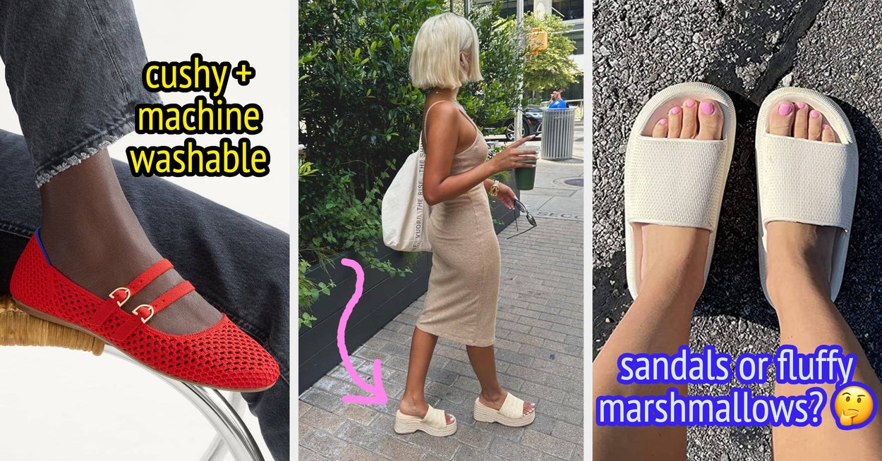 We hope you love our recommendations! While every product is independently chosen by our editors, BuzzFeed and our publishing partners may collect a share of sales or other compensation from the links on this page. You can read more about how our affiliate partnerships work in our Editorial Standards & Ethics Guide. Stylish and travel-ready Dr. Scholl's sneakers, cushy Birkenstock-esque sandals that mold to your feet, and more cute kicks that make it feel like you're floating above the pavement. There's nothing worse than being on your feet all day and that moment when you start to feel it: the overall fatigue, the ache in your arch from lack of support, the rubbing at your ankle, and (ugh) the pain of a blister starting to form. While everyone has different shoe needs (depending on whether your feet are wide or narrow, the shape of your arch, etc.), a ton of reviewers attest to the cloud-like comfort of these sneakers, sandals, boots, and flats. Unless otherwise specified, all sizes in this post are listed in women's. Promising reviews: "Like a cloud ☁️ These are the most comfortable shoes I have worn; it feels like a pillow hugging your foot. The same day they were delivered, I ordered another pair in a different color. I’m a healthcare worker, and these are perfect for standing and being on your feet a lot. Walking feels very smooth and low-impact. I never leave reviews on anything, but these are amazing." —Ian Durham "As someone who owns a pair of Hokas, in my opinion, these are better. I have plantar fasciitis and work in a hospital. Believe me when I say this, I HAVE ZERO FOOT PAIN when I'm wearing these! For half the price and comfort, I will 100% recommend these to anyone." —Jennifer Emilien Get them from Amazon for $69.99 (available in sizes 5.5–11 and eight colors). Promising reviews: "Like walking on a cloud. These are the most comfortable sandals I have ever owned. I have plantar fibroma, which makes wearing shoes extremely uncomfortable. These are great, providing arch support and a comfortable walk. My feet stay in place without sliding side to side. The soles don't squeak when walking on polished floors. I bought two colors and, for the price, may add a few more." —S. R. F. "I have six pairs of Birkenstocks and just didn't want to spend that kind of money this time. These sandals are actually more comfortable than my Birkenstocks. They have added padding on the insole. I think they were almost 1/3 of the price. I was pleasantly surprised by the quality." —Amazon Customer Get them from Amazon for $34.99 (available in sizes 5–12, including wide sizes, and 20 styles). FYI, these are best suited for narrow to medium-sized feet. Promising review: "These sandals are like cotton candy clouds for your feet. Basically, the Rolls-Royce of sandals." —A. Alphonse "Comfort is a key feature that sets Plaka sandals apart from the rest. The soft and flexible sole provides excellent cushioning and support, making them incredibly comfortable to wear for long periods. The sandals conform to the natural curves of my feet, offering a glove-like fit that feels like walking on clouds. The adjustable straps ensure a customized and secure fit, allowing me to walk with ease and without any discomfort or blisters." —Ashley Get them from Amazon for $34.95 (available in sizes 5–11 and 22 colors). Promising reviews: "They felt weird the first time I put them on…but as I started walking in them, it got better! Usually my feet are killing me by the end of the day or I’m just super sweaty in my dress shoes, but these are like walking on a literal CLOUD ☁️ and they let my feet breathe!" —Alyssa "Literally the BEST shoes ever! So comfy. I spent a whole day at Disney with no complaints, normally I'm tired after two hours of walking in the park, but with these babies, I was up and walking alll day with no problem." —Katherine Get them from Amazon for $45+ (available in sizes 5–11 and 20 colors). This particular style fits true to size, though it's recommended to go a half size up for a roomier fit or if you have wider feet. The two straps are also flexible and adjustable. I have a pair of Rothy's flats, and they're super comfy and feel so lightweight and stretchy! I have them in the neutral Ecru color, but they come in a ton of gorgeous colors and I'm always tempted to snag them in more styles. Psst — check out my colleagues' full Rothy's flats review for more deets! Promising review: "This is my first pair of Rothy’s, but won’t be my last. They’re like walking on a cloud, and I love the beachy crochet. Highly recommend!" —Elana B. Get them from Rothy's for $165 (available in sizes 5–13 and in nine colors/patterns). Rothy's flats come in a bunch of other styles, too! Vivaia is a small shoe brand founded in 2020 with the mission to create stylish and high-quality footwear. Many of the brand's shoes are made from recycled water bottles, and they've implemented a production process that actively works to reduce waste. BuzzFeed Shopping writer Emma Lord says, "You probably recognize the brand name from a bajillion Instagram posts that are like 'I DANCED THE NIGHT AWAY IN THESE HEELS!!' for the heeled version of these, but damn if they aren't right. These didn't cut into the back of my heel at all, and felt comfy enough that I walked as easily as I would in my usual sneakers, if not easier since these are SO so lightweight. I took these on a recent trip to London where I was walking 20,000+ steps a day, and can confirm they hold up in rain." Promising review: "The second I had these on I was comfortable. This means a lot to me as I suffer from plantar fasciitis and have more limited choices in shoes these days. Vivaia is a go-to for me because of the fantastic arch support, and these did not disappoint. Like walking on clouds. They are the perfect height, summer style, and happy feet." —Matthew R. Get them from Vivaia for $69+ (originally $129; available in sizes