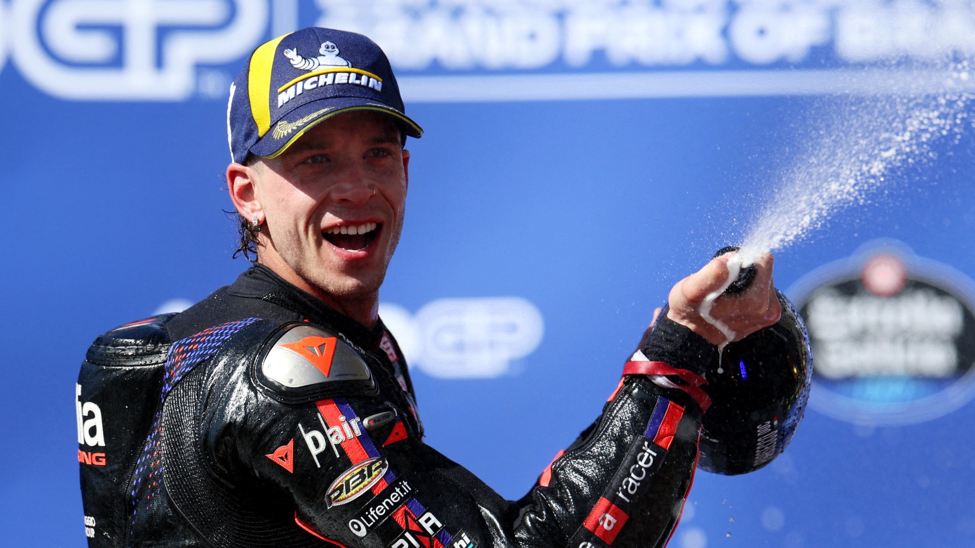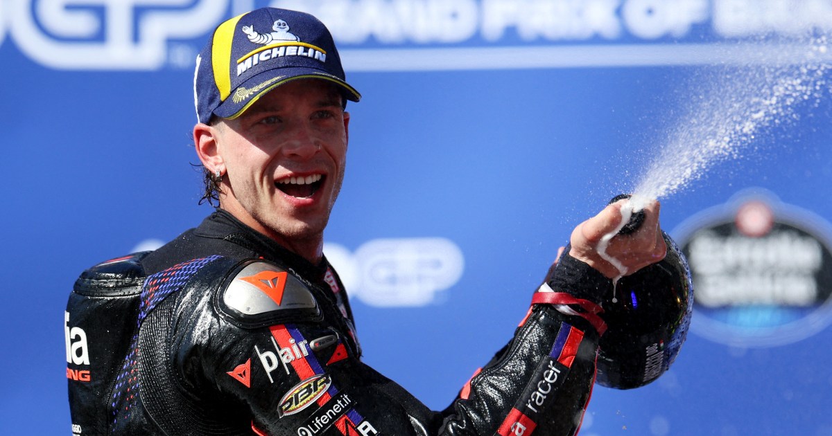 Jorge Martin made it an Aprilia 1-2, and VR46’s Fabio Di Giannantonio held off defending MotoGP world champion Marc Marquez down the stretch to claim third.
