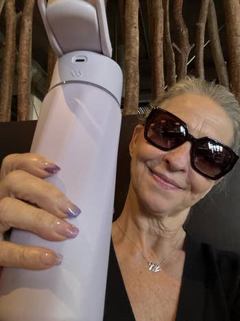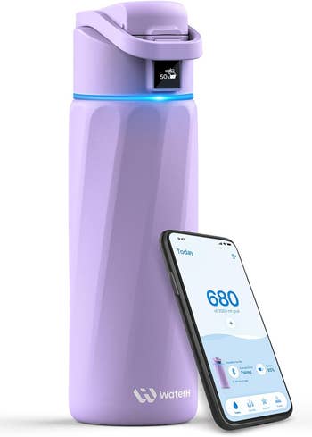 Promising review: "I love this smart water bottle! My husband bought it for me when I had surgery for kidney stones. I've always struggled with staying hydrated because I don't often feel thirsty, which led to the surgery. I got it in the matcha green color, which is very nice. This bottle is a lifesaver. It reminds you to drink by using a flashing light on the bottle and a notification from the companion app. The app even helps you determine your daily water goal and lets you set reminder intervals. After you take a sip, the bottle shows you what percentage of your goal you've consumed so far. Did I mention you can choose the light color on your bottle? You can set it to white or a multicolor.​ I carry this bottle everywhere. It's insulated, so my water stays ice-cold, and it's the perfect size for my car's cup holder. It's also very well-made. The charge port is in the lid, and the battery life is impressive — I've only had to charge it once since I got it, and it still had battery left. I just 'topped it off.' While I use this as a tool to maintain my health, it's also fun to use. It really motivates you to drink, especially if you're not always excited about plain water. I know the price might seem high for a water bottle, but when you consider that a high-quality, non-smart bottle can be expensive too, it feels like a worthy investment." —Objective_Input