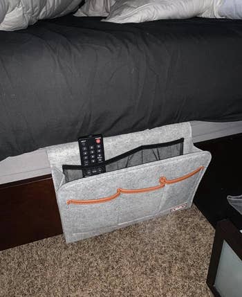 Promising review: "Love this bedside pocket organizer. The outside pockets hold lots of things like phone, earbuds, charger, medicine. The large pocket is big enough for an iPad or book. I used this while at home recovering form an injury. Would definitely recommend." —Kaleb Booth