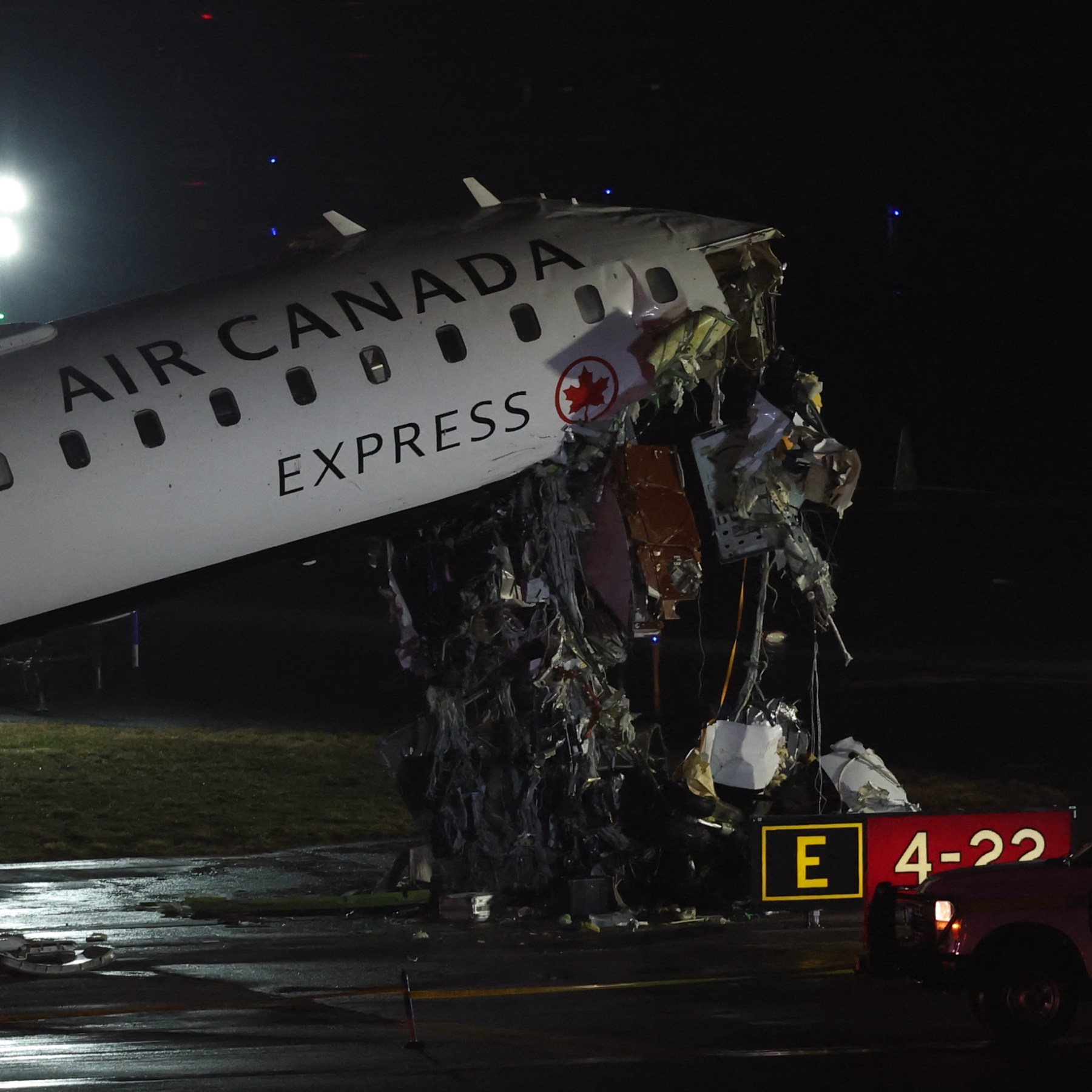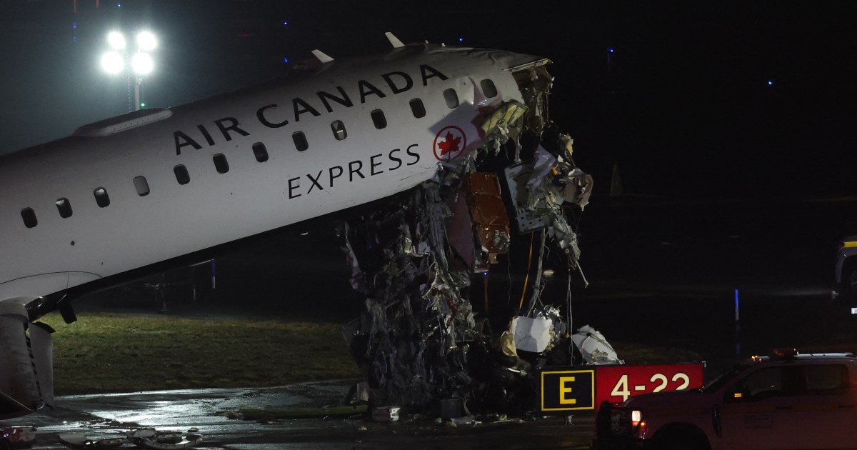 The incident occurred while the Air Canada Express flight 8646 from Montreal was landing at New York’s LaGuardia. Save Share An Air Canada Express flight 8646 from Montreal has struck a ground vehicle while landing at New York’s LaGuardia, leading to the airport’s closure. The New York police told the AFP news agency on Monday that the Air Canada plane “collided with a port authority vehicle”. Separately, the fire department said it had “responded to a reported incident involving a plane and vehicle” on runway four. Air Canada in a press release said the preliminary passenger list indicates the plane was “carrying 72 passengers and 4 crew members, although this is subject to confirmation”. The incident occurred at 11.47pm (0347 GMT) local time, it added. The CRJ-900 aircraft struck the vehicle on Sunday evening at a speed of about 24mph (39km/h), flight tracking website Flightradar24 said. It was operated by Jazz Aviation, Air Canada’s regional partner. The United States Federal Aviation Administration (FAA) issued a ground stop for all departures to LaGuardia due to the aircraft emergency, with the airport closure in effect until 05:30 GMT. The probability of an extension was listed as high. The FAA notice stated that the airport halt was due to an emergency and that there was a high probability of an extension, providing no further details. Unverified footage on social media showed damage to the plane’s nose as it tilted upwards. The Reuters news agency could not immediately verify the footage. LaGuardia’s website showed arriving planes had been diverted to other airports or returned to their point of origin. In a separate notice to airmen, the FAA said the airport could be shut until 18:00 GMT. New York’s emergency management authority warned people to “expect cancellations, road closures, traffic delays & emergency personnel” near the major transport hub in the borough of Queens. “Use alternate routes,” it said on X.