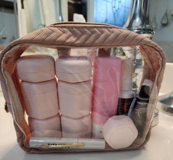 We hope you love our recommendations! While every product is independently chosen by our editors, BuzzFeed and our publishing partners may collect a share of sales or other compensation from the links on this page. You can read more about how our affiliate partnerships work in our Editorial Standards & Ethics Guide. Traveling's always a pain, but maybe now it can be less of one? Promising review: "This product was a lifesaver at a cabin destination wedding. I absolutely love the Suds2Go company. They made sure I had it in time for the wedding. Several people asked me where I got it, and they went on and ordered some for themselves!!! It would make a great gift. I keep mine in the car everywhere we go! We have used it several times already." —Candace SImons Get a pack of two from Amazon for $28.99 (available in four colors). Promising review: "I love this little gadget. I used it to attach my jacket and computer bag to my luggage on an extended business trip. It made my airport walks so much easier. Now that I'm back home, I've been using it daily to attach my jacket or cardigan to my work bag or purse." —Michele Get it from Amazon for $7.99+ (available in five colors and multipacks). Promising review: "The perfect companion for traveling with a toddler who loves to snack and prefers being independent. I can fit about 12 average-size grapes in it, about 5–6 regular-sized cookies, about 8–10 mini cookies, a big handful or small cereal such as Cheerios, and about 10–12 standard Ritz crackers. These estimations are all things that I regularly place in there for him to snack on. Nothing spills out, and whatever does come out is whatever he grabs with his hands to get, which is amazing. The only thing I would suggest is placing foil or plastic wrap around the mouth of the cup to prevent any of the snacks from getting stale from being exposed. The lid doesn’t fully cover the snack from air exposure. It simply protects the snack from spilling over and promotes child independence." —Antoinette Get a pack of two from Amazon for $6.88 (available in two color combos). Promising review: "Game changer for travel! We were gone for two weeks, and I was able to wash all the clothes I had packed! Helped with using only a carry-on for the trip and kept my clothes fresh and clean! So easy to use and smelled nice! Will never travel without them again!" —Kristy Get three packs from Amazon for $5.49+ (available in two scents, two sizes, and four pack sizes). Promising review: "Guys. If you’re going on a trip and need a cute hat but don’t want to worry about it getting smashed…look no further. I bought this hat last summer. It’s been as far as The Maldives and all over Europe, and I wear it on the reg in southern California. It’s totally kept its shape, and I’m not shy of shoving it in bags. 10/10 recommend! I’m sitting on a bus in Croatia right now thinking how awesome this hat has been and decided to write a review, as I rely on reviews for my purchases on Amazon. Hope this helps someone!" —Lyra S. Get it from Amazon for $25.99+ (available in three sizes and 14 colors). Promising review: "I have left the house on numerous occasions and needed a hair tie and could never find one. I could dig through my purse, diaper bags, and car, and there was never a hair tie lying around. I have had to refill this hair-tie holder on about five occasions because of how many times I've taken hair ties off for myself and the friends who need one. Great invention." —Samantha Get it from Amazon for $8.99 (available in three colors). Promising review: "I packed enough shampoo, conditioner, and toothpaste for a week. I was afraid they would leak but surprise, they didn't. Love the small size. Would hold more than a week's worth of product." —maryd Get a pack of four from Amazon for $9.99+ (available in six colorways). The "daily routine" set includes four medium and three small capsules as well as magnetic, interchangeable labels for shampoo, conditioner, body wash, moisturizer, cleanser, a pill icon, and a blank tile. They also offer skincare, bodycare, and haircare sets, as well as extenders that increase the size of the capsule. And if you *really* want to customize your collection, head to their site to build your own unique set. Cadence is an AAPI woman-owned small business that Steph Hon founded with the goal of eliminating single-use travel-sized plastics. The containers are made from recycled ocean-bound plastic. Promising review: "These containers are perfectly sized for all my travel needs, whether it's skincare products, vitamins, or even small jewelry pieces. They fit neatly into my carry-on, saving space and keeping everything organized. No more messy toiletry bags or digging around for tiny items — everything has its place with Cadence. The quality of the materials is top-notch. The containers snap together securely, making it easy to keep them organized and prevent any spills. It's such a clever and practical feature that adds a touch of luxury to the whole experience. Plus, it's oddly satisfying to hear the little click when they snap into place! "I'll be honest — the price did give me pause at first. These containers are definitely an investment, but I can confidently say they're worth it. The peace of mind they provide, knowing my products are safe and secure during travel, is priceless. Plus, the high-quality build means they'll last for many trips to come, making them a smart long-term investment." —Randy G. Get the daily routine set from Amazon for $138 (available in five colors and other sets). Reviewers say the pumps struggle with thicker consistencies. Promising review: "These make travel so easy and cute. First, it’s the perfect amount for what’s allowed on flights. No questions were asked, and I got through security with no problems. I bought two and had my shampoo and conditioner in one and face wash and sunscreen in the other. I will admit that you can’t u