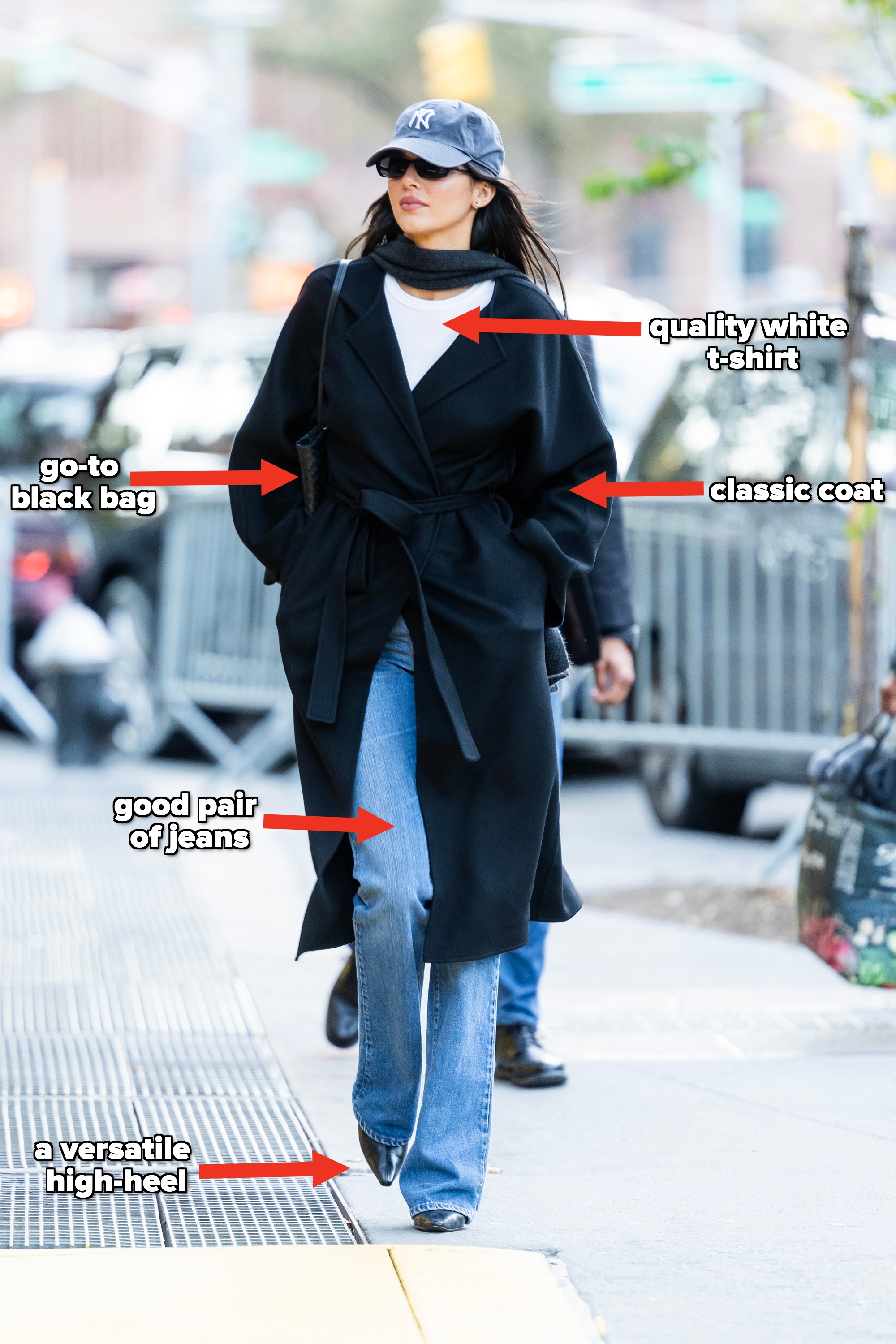 "What matters more than age is how well clothes fit, the quality of the pieces, and how thoughtfully an outfit is put together." A lot of people assume that as they get older, their wardrobe has to follow a new set of rules (me included). But according to Maddy, that mindset actually makes finding your personal style harder. Because what changes in our 30s and 40s isn’t our ability to wear certain clothes; it's our lifestyle. "Someone in their early 20s might be dressing for parties or experimenting with trends, while people later in life could be balancing work, family, and social lives," Maddy said. Naturally, that shift pushes people toward clothes that are reliable, comfortable, and easy to style, without losing their sense of personal identity. In other words, personal style doesn’t evolve because of new fashion rules. It evolves because your life does. It's a common mistake for people to build wardrobes around how they wish they dressed instead of how they actually live. "Even if I think it looks amazing, I never push someone into wearing something that they don't want to," she said. "I always tell my clients, 'I'm not there to dress you every morning. If you aren't in love with it now, you are never going to pull for it.'" "What matters more than age is how well clothes fit, the quality of the pieces, and how thoughtfully an outfit is put together," Maddy said. "And paying attention to how garments sit on your body, how fabrics move, and how pieces work together will always be more important than chasing trends." There are a few different ways fashion experts categorize body shapes. One of the more detailed and sworn-by systems is the Kibbe Body Type System, which looks at bone structure, proportions, and overall lines to help people understand what silhouettes tend to suit them best. But for beginners (me), I feel like the “fruit” body shape system, which groups bodies into simple shapes based on proportions between your shoulders, waist, and hips, is easier to grasp and a good place to start. Here are the six main shapes of the "fruit" body shape system and their characteristics: – Oval (Apple): broader shoulders and midsection, slimmer legs – Triangle (Pear): hips wider than shoulders – Hourglass: shoulders and hips balanced with a defined waist – Rectangle: shoulders, waist, and hips similar in width – Inverted Triangle (Diamond): shoulders and hips balanced with a defined waist – Trapezoid: shoulders, waist, and hips similar in width The "fruit" body type system is actually considered pretty simplistic, so once you feel comfortable with that, I recommend looking into the Kibbe Body Type System next — this system looks at bone structure, proportions, and overall lines to determine the yin and yang elements of your Kibbe Body Type and what silhouettes suit you best. And if all the body type categories feel like a lot to remember right now, start with something simpler: the 1:2 proportion rule. Basically, rather than cutting your body visually in half (like with a long t-shirt and jeans), divide your outfit into unequal proportions, like a shorter top with longer pants (1:2) or a longer jacket over a shorter base (2:1). This usually makes a more balanced and visually interesting silhouette. Her reasoning is actually pretty simple: once you have a few great pairs of trousers or jeans, you can build a huge number of outfits around them. Think about it this way. if you wear the same pair of jeans one day with a light blue sweater polo and the next day with a white T-shirt, those read as two completely different outfits. “But if you wear the same light blue sweater polo two days in a row,” Maddy joked, “you’re an outfit repeater.” In other words, the pants are doing more of the work than you might think. That’s why Maddy encourages clients to focus on building a small rotation of high-quality bottoms first, whether that’s great denim, well-fitting trousers, go-to skirts, or versatile casual pants that can be dressed up or down. Once you have this important foundation, the rest of your wardrobe becomes easier (and more fun) to mix and match. With the right white tee, you can wear it under a jacket, under a button-up/over-shirt, under a sweater, or just as-is and it'll look pull the whole look together. A structured heavier weight white t-shirt is a solid choice since it holds its own shape and won't cling to your stomach or chest; instead, it creates a clean, architectural line from your shoulders down — this is great for people with a rectangle or oval shape body type in particular. Try on a few different material white shirts and see which you like best. "And any piece that you are going to wear often should be a piece you choose to invest in," Maddy said. Ever seen a great outfit and then you look down and he’s wearing some beat up old running shoes? Because Maddy has. I think we all have. "You need one pair of shoes for each different occasion — flip flops for the summer, heels for a night out, loafers for a formal event, an everyday sneaker, and a workout sneaker," Maddy said. "Don’t find yourself in a situation where you are wearing running shoes with jeans, I beg!" This might include quality staples like well-fitting trousers or denim, neutral shirts, jackets, and shoes that can be mixed and matched for different occasions. But when you're dealing with women's fashion, there are so many more options and cuts that it can be overwhelming. That's why Maddy G points towards Kendall Jenner as a solid inspiration for starting your capsule wardrobe. "As a stylist, I’m always looking for inspirational dressing, not outfits that only look good because someone is a celebrity or has a perfect body," Maddy said. "Kendall really masters that model-off-duty cool girl vibe in a way that feels achievable and timeless. She isn’t relying on overly sexy pieces or flashy trends. Instead, she leans into high-quality basics, clean silhouettes, and tho