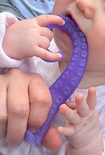 Promising review: "I’ve tried ALL the teethers, believe me. This one truly stands out. I love how easy it is for my baby to hold it himself. I also love how I can put it on my finger and make it a fun activity for us to share together. He really gets going on the individual tentacle suckers; they definitely seem more satisfying for his little gums than others we’ve tried. Love love this product, thank you!" —Quinn