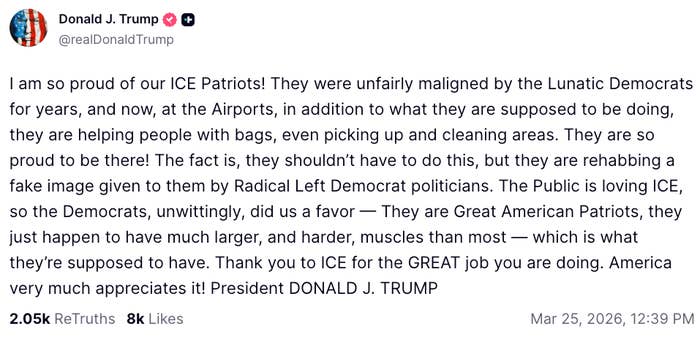Donald Trump Just Posted The Weirdest Rant About ICE Having Big Hard Muscles