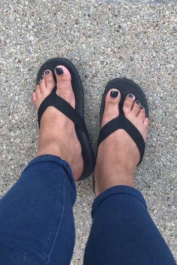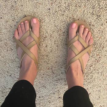 Promising review: "I really love these. They're very comfortable and look good with just about everything. I followed the advice in other reviews and got a size down as they do run big. I usually wear an 8.5 and got an 8. The 8 fit perfectly. As I have wide feet, I always have to worry about the front straps, but since in these it's elastic it was no problem. I really love them and would definitely buy again." —Jacqueline Lopez