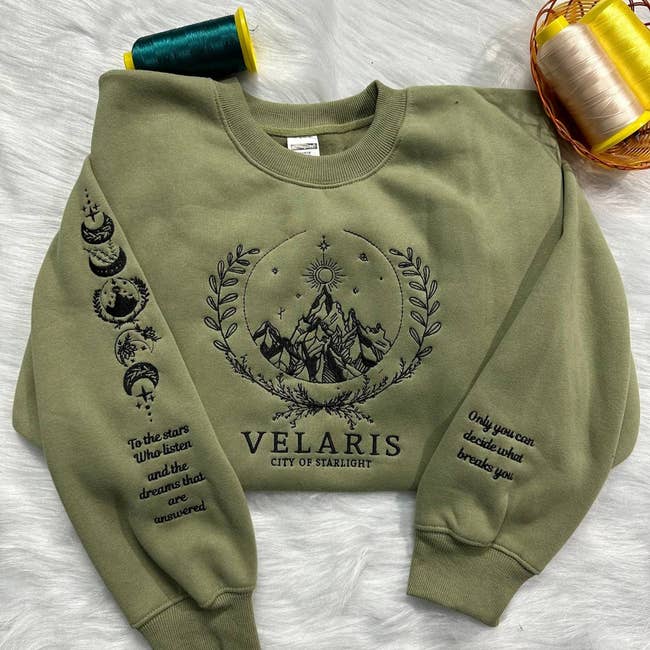 Promising review: "ACOTAR is my all-time favorite book series, and I knew I needed to get myself one of these sweatshirts. I got myself the deep green. The seller messaged me letting me know it was on its way. Very friendly! The packaging was great, and the shipping was fast. I just washed it and put it on and LOVE it. I ordered a large for the oversized look. I LOVE it and will absolutely be getting more in additional colors. It is very thick and VERY soft on the inside. Thank you so much to the seller!" —My BeeBee's Crochet Creations
